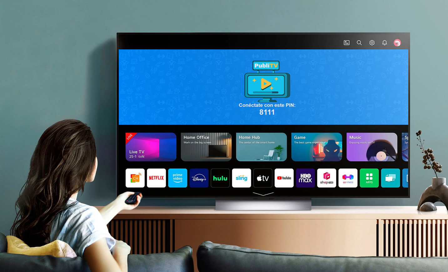 En el menú principal, entra a PubliTV para configurar y previsualizar la publicidad que se mostrará en tu televisor. Aquí podrá ajustar los parámetros de tu presentación.
